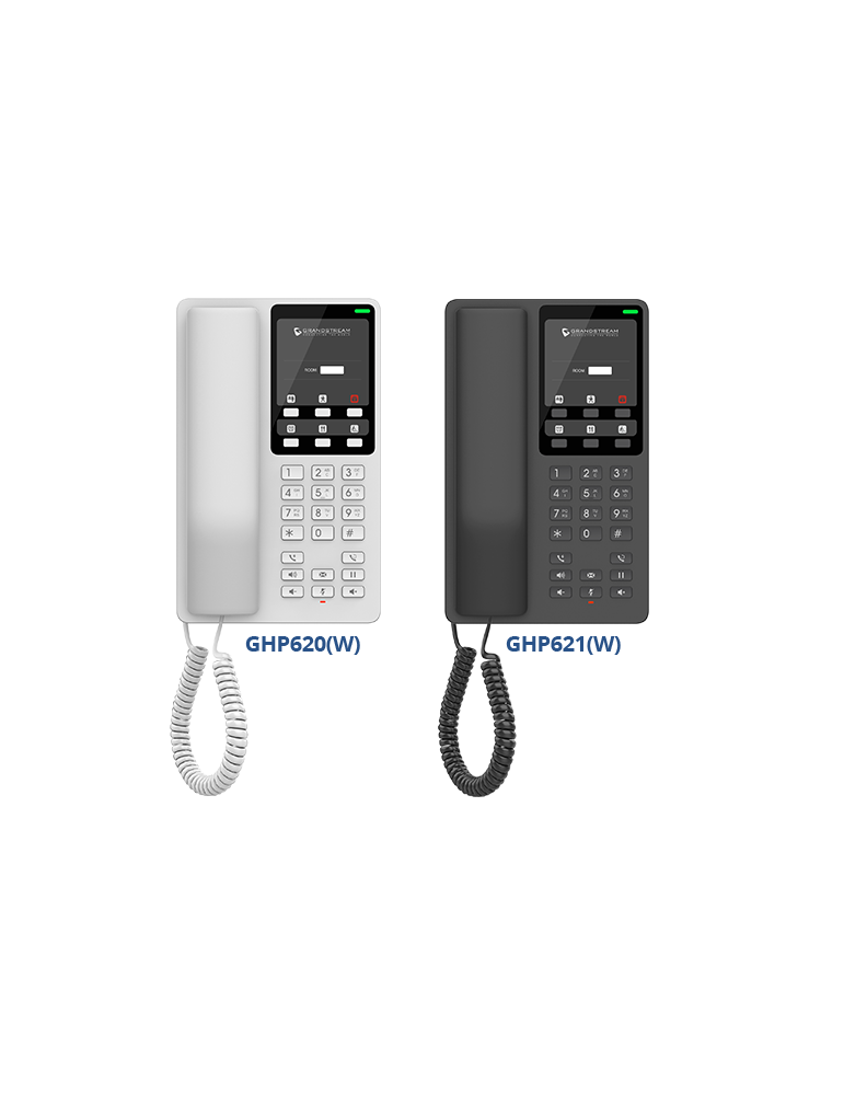 The GHP Series of hotel phones feature the GHP620/GHP620W and GHP621/GHP621W, easy-to-use IP phones for any hotel room that can be programmed and customized based on the needs of hotels and their guests. The GHP620W and GHP621W models are equipped with integrated dual-band Wi-Fi to support wireless deployments.