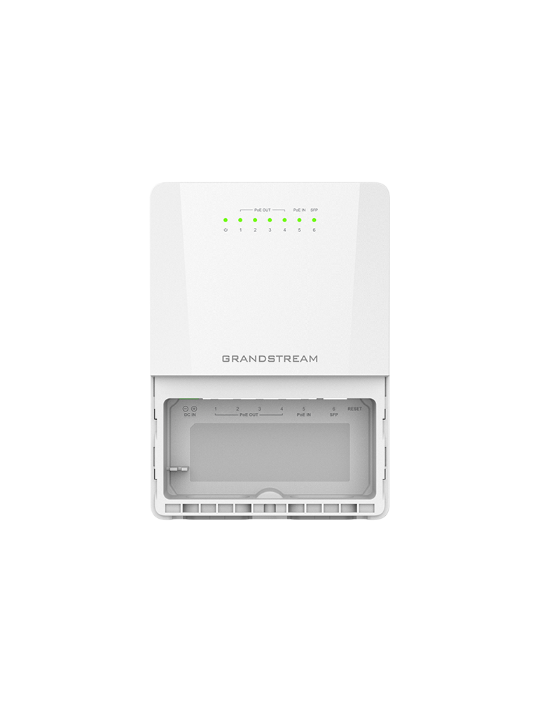 The GWN7710R is a 6-Port (5GE+1SFP) outdoor lite managed PoE switch that features an IP66-rated waterproof and dustproof casing to protect against harsh weather conditions, including rain, snow, and high temperatures.