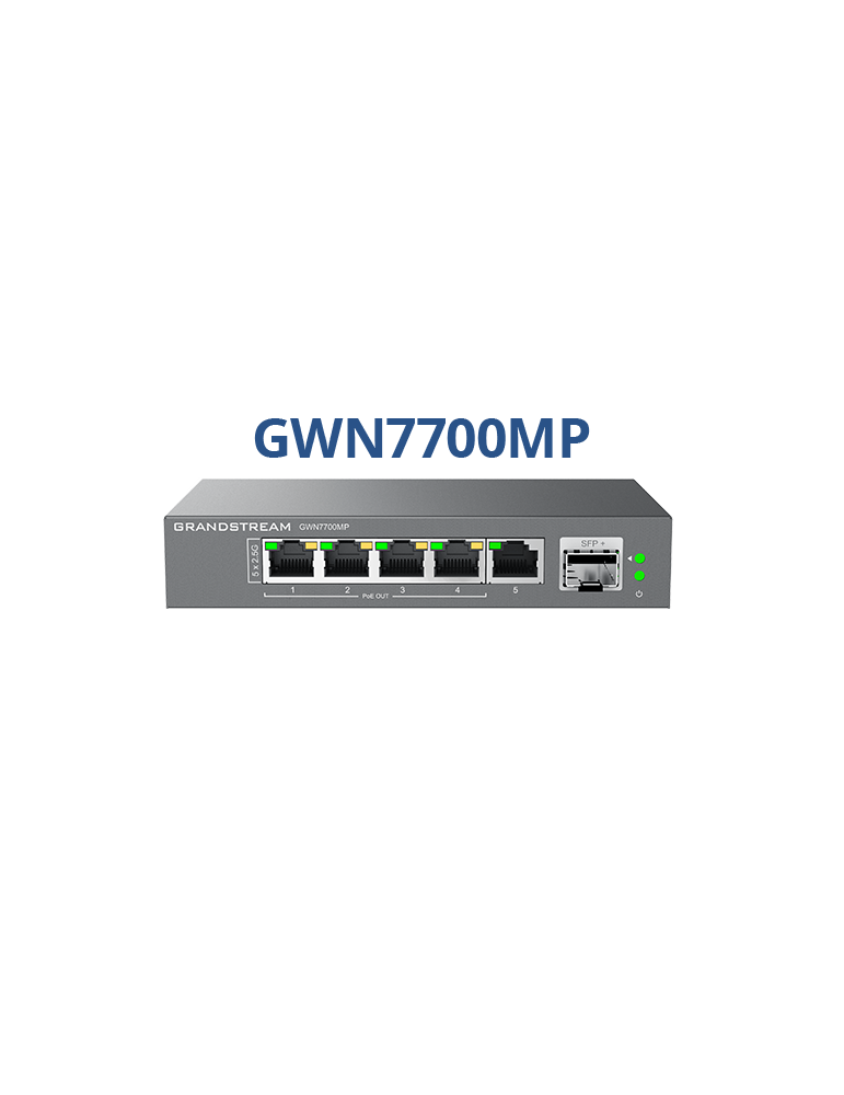The GWN7700MP is a 5 port unmanaged multi-Gigabit network switches that provide high-speed network connectivity up to 2.5Gbps to home offices and small-to-medium businesses